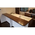 I型キッチンに造作カウンターをフラットに造ることで アイランドキッチン風になります。 コストもかなり抑えられます