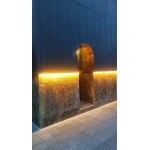 増築も行い道路ギリギリまで拡張しました。 大谷石と銅板と間接照明を組み合わせ 特徴のある店構えになりました