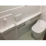 | その他採用機器・設備 | トイレ:Panasonic アラウーノL150 キャビネット扉カラー:ホワイトアッシュ クロス:サンゲツ RE7943 クッションフロア:サンゲツ HM4167 |