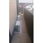 簡易的な防草解決策として、砂を慣らし水を撒くと固まる土でご提案しました。 固まる土を施工すると溜まった水の浸水速度が落ちる為、水はけを考慮し、室外機回りはレンガで囲い砂利敷とする事で水溜まりにも配慮した施工となっております。