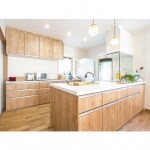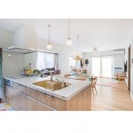 開放的なアイランドキッチンのあるLDK、素敵ですね。 ホワイトのレンジフードとIHヒーター前にガラスパネルを取り付けたいので、リクシルのキッチンを希望します。 なるべく家具を置きたくないから、収納多めにしたいですね。 あと、木の感触が好きで、無垢材の床に憧れます。