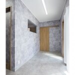 ウォールナット柄が落ち着く浴室