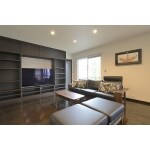 リビング入口左の壁に造り付けの本棚を設置。読書家のご主人には大好評・・・因みに寝室にも本棚を設置。又、何と本棚横の引戸を開くとそこにはシャワールームが・・・