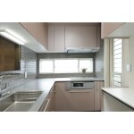 扉色を変えたことにより、ずいぶん雰囲気も変わりました。キッチン前タイルも渋めのグレー色としました。