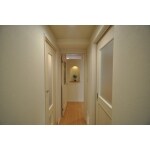玄関からリビングまで一直線につながっています。限られた間口で個室や水廻りを配置するマンション故の間取り構成となっていました。手前がリビング、左側には和室があり右側にキッチン、その奥の壁裏に水廻りが集中しています。