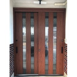 ・1DAYリフォーム対応の玄関ドア「リシェント」へ交換。 ・落ち着いた木目柄で、中桟付きの網戸もセット。 以上を提案させて頂きました。