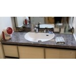 アンティークホワイトの扉材が上品な洗面化粧台。