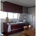 以前のキッチンとイメージを変えることを狙い、ワインレッドのキッチンをご提案いたしました。