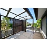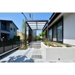 広いテラスのスペースを作り、屋根と目隠し用にスクリーンも設置。 リビングと外を繋ぐ空間が出来ました。 車庫側もスロープを解体して門周りの位置を変更。 広々とした空間になり駐車も楽になりました。