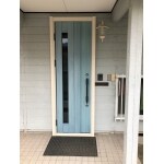 - アイスブルーの玄関ドア