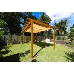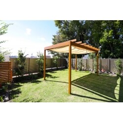室内から見られる景観はそのままにして庭木などを最小限に抑え、その横に家庭菜園用の畑を設置しました。 畑の南側には芝生を敷き詰めパーゴラを設置。 その一角にバーベキューなどが楽しめるようブロックを積み重ねて簡易的な窯を作りました。