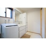 収納量を多くするため、化粧台を大きくし、部屋も拡張して、ゆとりがある洗面室へしました。