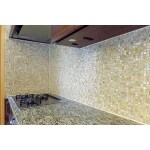 ・洗面化粧台は人造大理石のカウンター材を用いて一から操作 ・収納は新たに框扉を造作 ・壁にはベネチアンガラスを使ったモザイクタイルを使いオンリーワンの美しさを実現