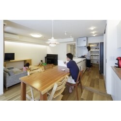 LD、洗面所まで見渡せるオープンキッチンに。家族とのコミュニケーションがとりやすくなりました。