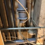 地下の浄化槽系統を本下水管に切替(地下トイレ排水系統は、ポンプ槽系統へ)