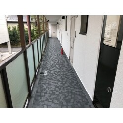 マンション共用廊下・階段長尺シート張り工事(階段)