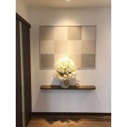 調湿性・脱臭効果に優れ、シックハウス対策にもなるエコカラットを配置し、カウンターを取付け、違和感のない空間を演出しました