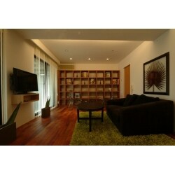 間接照明で、やわらかな光を演出するリビング、ペットドア付!