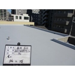 陸屋根の塩ビシート防水の改修工事です。大手ハウスメーカーで多く採用されている工法です