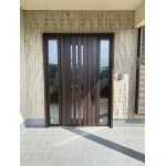 ブルーの外壁と合うホワイトの玄関ドアー。