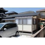 空き家になった借家を取り壊し、駐車場にし、防犯も考え塀で囲いました。晴れの日はテラスで洗濯物を干し、雨の日でもサンルームで干せます。