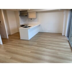 施工箇所はリビングダイニング約13畳(床暖房)、洋室約5畳(床暖房)、キッチン、廊下になります。フローリングはパナソニックのベリティスフロアを施工いたしました。
