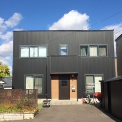 悪い部分は補修をし、上から金属サイディングを貼りました。黒いサイディングを縦に貼ることによりスタイリッシュな家に生まれ変わりました。