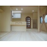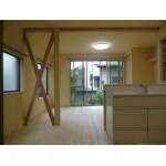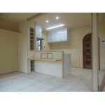 壁を撤去し、段差を解消しました。 耐力壁は表しにすることで開放的になりました。 リビングが一望できる対面キッチン お子様に目が届くのが嬉しいですね。
