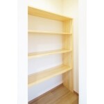 2部屋間を連動片引戸で仕切り、開ければ広い空間として使うことを可能にしました。 使い勝手の良い収納棚もご要望に合わせて造作しました。