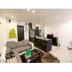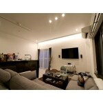 限られたスペースしかない建物でしたので1FはLDKとしてできるだけ広い空間を作り、対面キッチンにして居心地の良さを目指しました。 リビングは思い切って窓を一カ所塞ぎ、壁掛けのテレビ・音響システム・間接照明など居心地を重視して施工させていただきました。