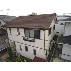 スレート屋根材の塗膜が完全になくなっており、屋根材の素地が出ている状態でした。 この状態になりますと、塗装を施しても長持ちしませんので、短いスパンでのお手入れが必要となります。 また、塗装は何度も施工できるものではなく、いづれは葺き替えとなってしまいます。