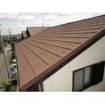 先々を考えてカバー工法をご提案しました。 下地が傷みすぎて葺き替えになる事を考えると、安価でお得な選択だと思います。 またガルバリウムでも色あせはするため、鋼板に天然石を施してあるこちらの屋根材であれば 色あせもなく、意匠性にも優れています。 天然石に摩擦があるため、雪止めがいりません。