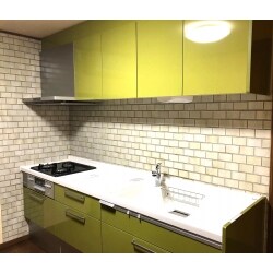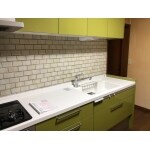 - 壁タイルに似合うオリーブグリーンのキッチンに交換