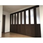 背の高い間仕切り折れ戸にしたのでリビングと奥の部屋の一体感があり広く感じます。押入だった収納もクローゼットにして綺麗に使いやすくなりました。 床の高さも合わせてフローリングに変えています。