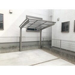 草木は伐根の上除去し、土間コンクリートを打設しました。敷地奥にサイクルポートを新設することで駐車スペースの拡張をしました。