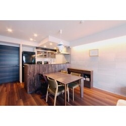 新築マンションをご購入されたお客様からオプション工事のご依頼をいただきました。 小さなお子様が2人いらっしゃるので、柔らかい雰囲気で家族が自然と集まるようなリビングダイニングを目指しました。 シンプルながらも優しくほっとする空間となるよう色や素材などをご提案させていただきました。