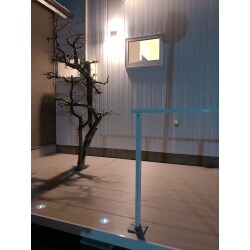 玄関を出るとすぐ前には車の通りが激しい道路でした。 ご家族には小さなお子様がいらっしゃるのでできるだけ前面道路に出ない動線を作りたいと思いご提案しました。 玄関わきには使用されていないスペースがありそこを有効活用。 見た目も重視されていたのでいらない植栽を処分し思い出残る植栽をスペースの目立つところに移植。植栽を囲むように白いウッドデッキを組むというご提案のもと工事をさせていただきました。