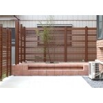 今回は隣地に面する部分全てに目隠しフェンスを設置し、全体にプライベート感を演出しました。 「gather 快天浴フェンス C型」 細いパネル・太いパネルと異なる幅のものを組み合わせているので、圧迫感の少ないデザインとなりました。