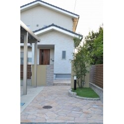 他社様で工事をしたのですが、外構を土間仕上げのままにしており、閑散とした寂しい状態だったので、見栄えのする通行人の目に止まるような外構にしたい、というご要望がありました。