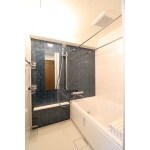 アクセントパネルを黒にして高級感のある浴室に