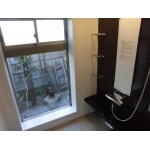 足の伸ばせるゆったりとしたユニットバスに交換しました。浴槽の位置を変更し、洗面所の使い勝手を考え、造り付けの棚を小さくして洗面化粧台のスペースを確保し、お風呂の入口を引戸に変更し、お風呂の窓の大きさを小さくして中庭が見えるような配置に変更することをご提案しました。