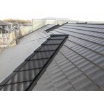 補修をし、棟や谷鋼板も含むて塗装をおこなった屋根です。