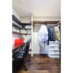 寝室隣の書斎兼ウォークインクローゼットは、限られた空間を最大限に活かせられるようレイアウトを工夫しました。
