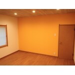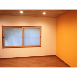 押入れを撤去し部屋を広くしました。 そこにアクセントでオレンジ色のクロスを施しました。