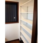 1階のキッチンは、水廻りしか使用しないとの事でしたので、低コストで基本的な機能を兼ね備えたミニキッチンをお勧めいたしました。背面の食器棚を撤去し、新たに白いよこ板を使った可動棚をお勧めさせていただきました。 2階のキッチンは、とてもキレイにお使いでしたので、レンジフードとガスコンロを新しいものにするお話になりました。