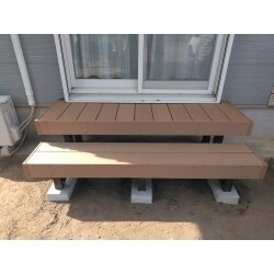 木の濡れ縁は長く使用していると、どうしても経年劣化で汚れてきたり、腐食して木が折れてしまい、転倒の恐れもありますので、腐食の心配もなく、お手入れも簡単な樹脂性のウッドデッキに取替えました。また、下に踏石を置かれて昇降されており、足場が不安定でしたので、ステップを付けて安全に昇降が出来るようになりました。