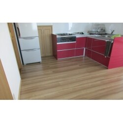 キッチンを赤に変更し、明るめのフローリングで、あたたかい雰囲気に仕上がりました。