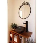 一見すると造作の洗面台ですが既製品をうまく利用しました。味わいのある洗面ボウルと黒い水栓が水回りのアクセントに。