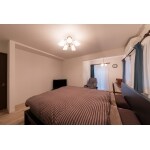 変形の寝室は身体を休める以外に心を休める為の癒しのスペースにも、お母様が大切にされていた、アンティーク調のランプやクラシックなカーテンレール、カウンターを残して新たな寝室に生まれまわりました。