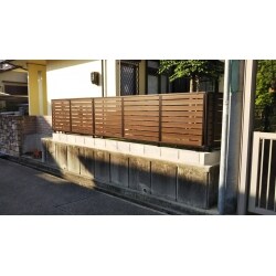 施工後 通風機能を備えた木調フェンスを取付けました。 外からの視線は遮られ、プライバシー・防犯対策にもなります。
